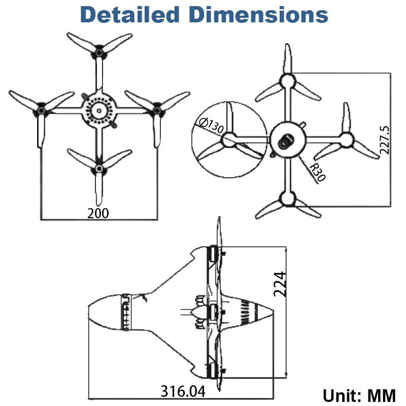 Flight control hole spacing: 2020MM (M2) 3030MM (M3)