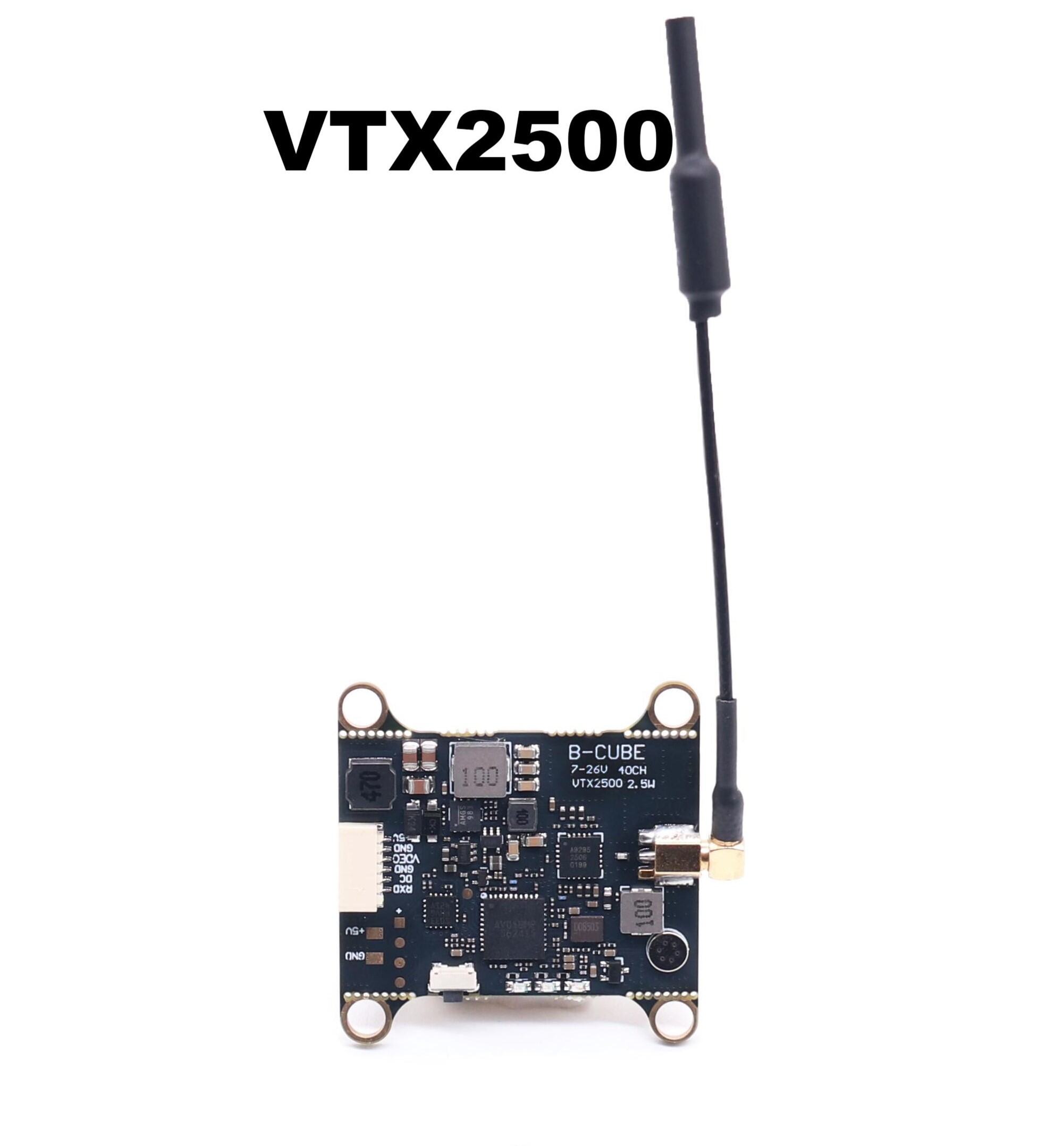 Default output: 5865MHZ (5.865GHZ)/2.5W Model: VTX2500 Frequency: 5645-5945MHZ Input voltage: 7-26V Output voltage: 5V/1A Channel : 40CH Transmission power: PIT/25MW/200/400/800/1600MW Boundary dimension: 36 * 36MM Screw hole: 30.5 * 30.5MM Screw aperture: 3MM Weight: 7.3g