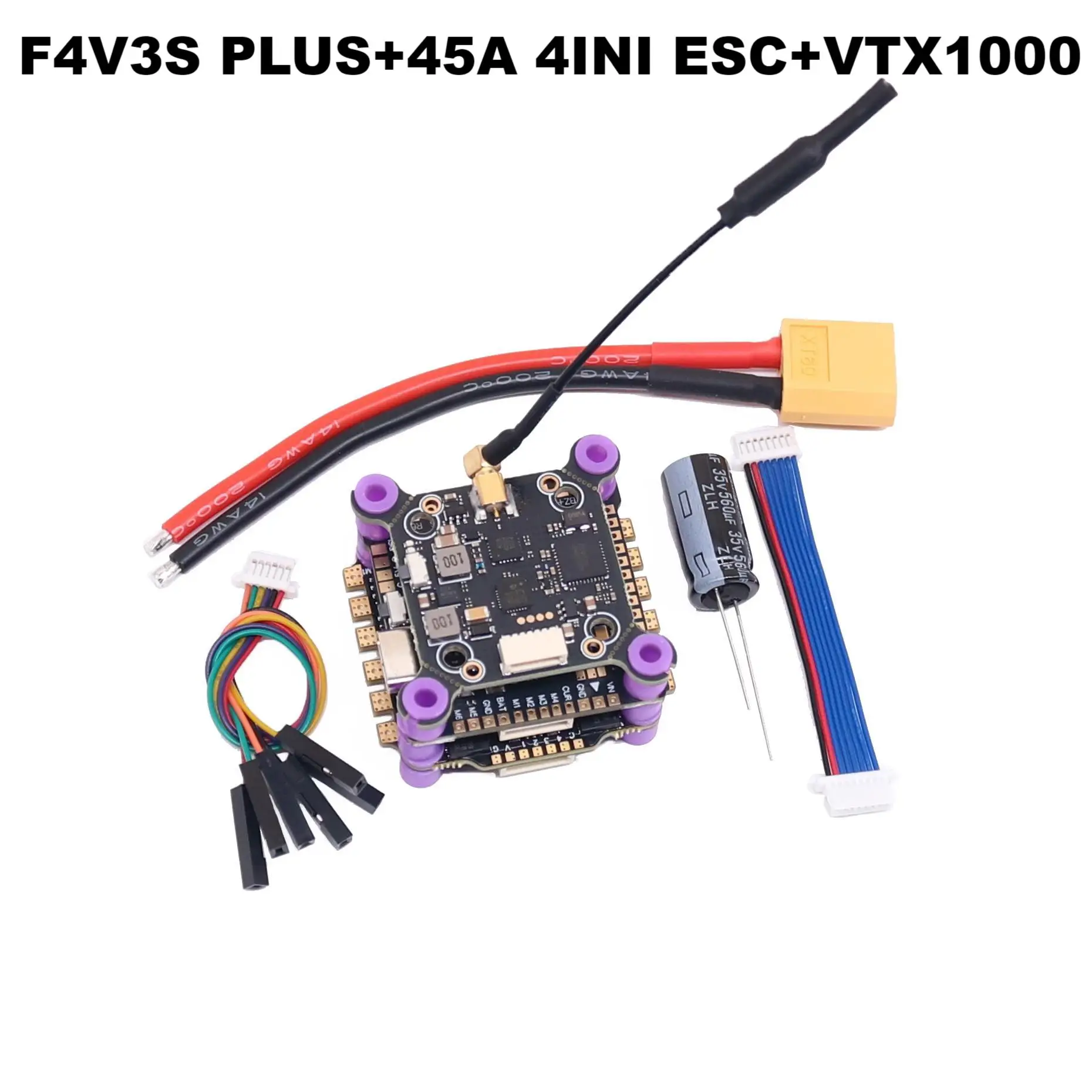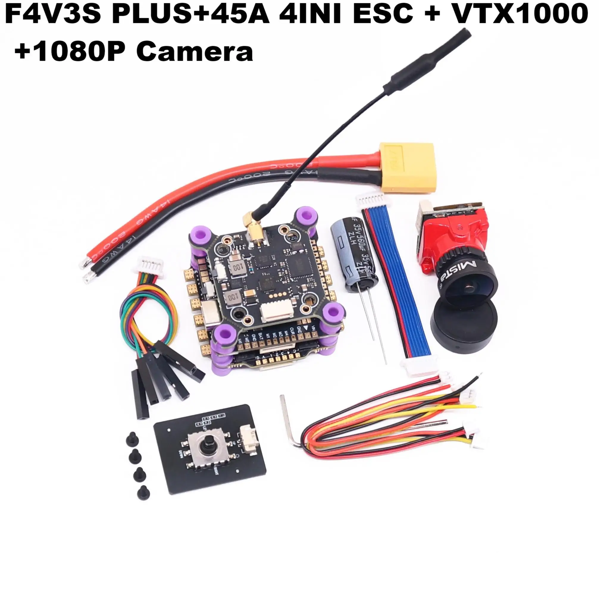 F4V3S PLUS flight control + 45A 4INI ESC + VTX1000 + 1080p camera + 3K Carbon fiber MARK4 5inch + 4 2205 2300KV Motor + 2 pairs 5045 3-brade propeller pink + 2 pairs 5045 3-brade propeller black
