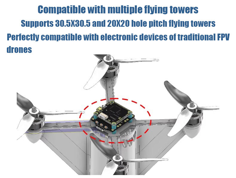 Контроллер полёта F722 Baro: контроллер полёта FPV-Freestyle разработан для оптимального управления полётом, обеспечивая вам больше контроля над ним. Контроллер оснащён FPV-контроллером, адаптером питания и кабелем питания. Он может использоваться для подключения дрона к контроллеру.
