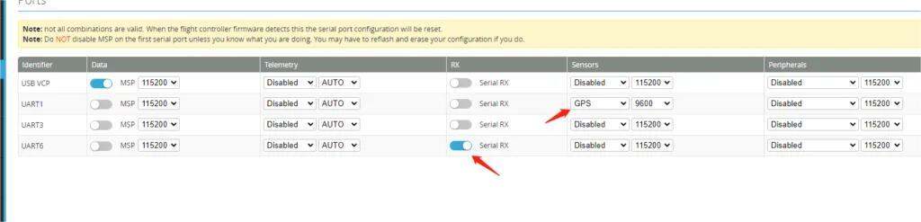 Если вы используете GPS, используйте UART1 для внешнего GPS.